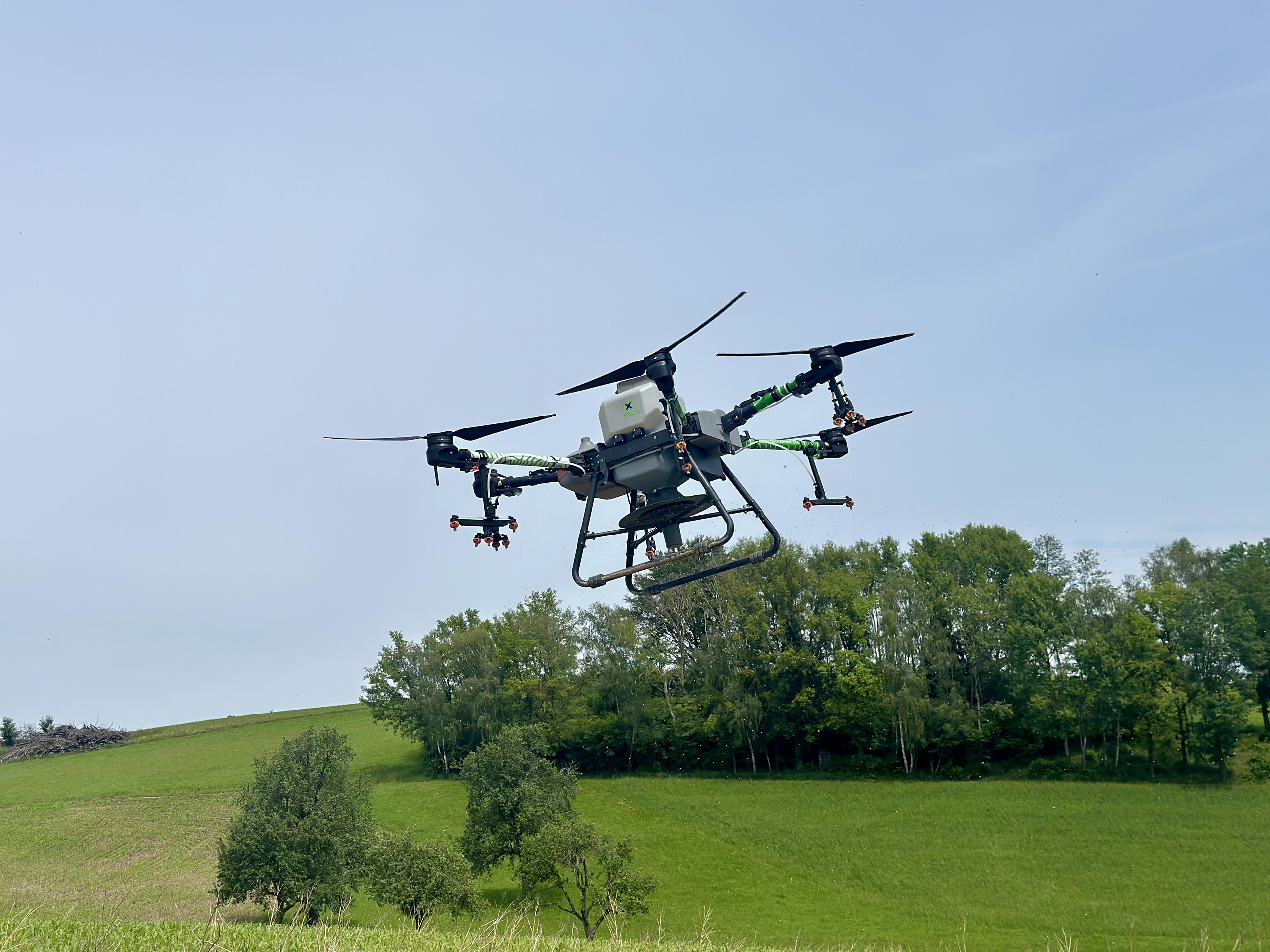 Gezielte Ausbringung von Flüssigkeiten oder Granulat mit Hilfe von Agrardrohnen. Ideal für unzugängliche Flächen oder punktuelle Anwendungen mit hoher Präzision.