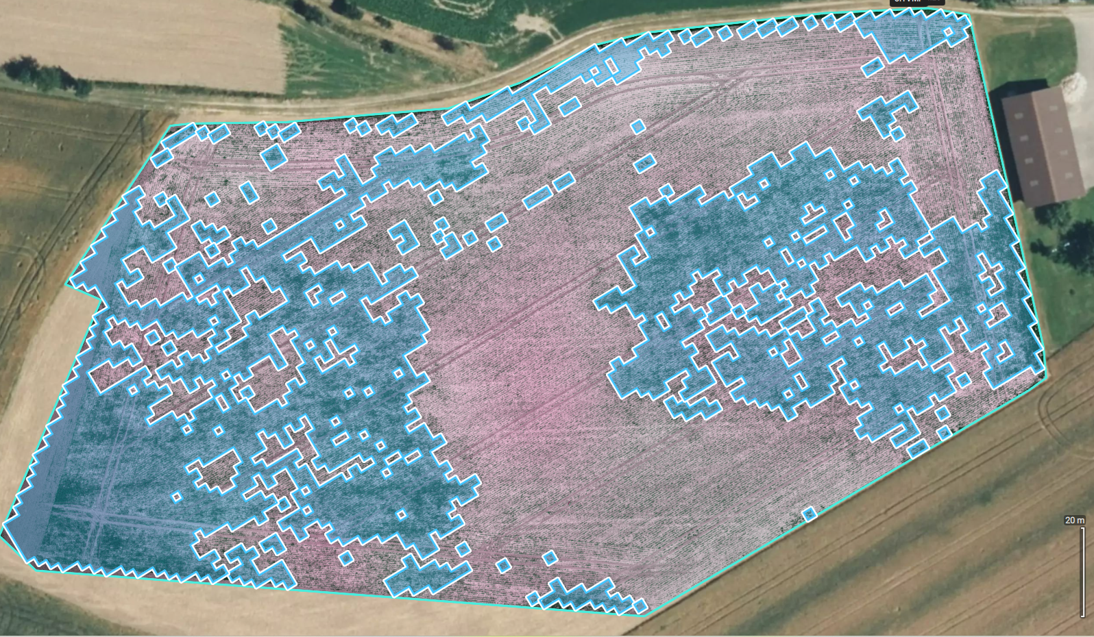 Sie erhalten eine Applikationskarte fertig zum import in ihr ISOBUS- Spritzenterminal und behandeln nur markierte Punkte mit der exakt benötigten Mittelmenge – der Rest des Feldes bleibt unberührt.