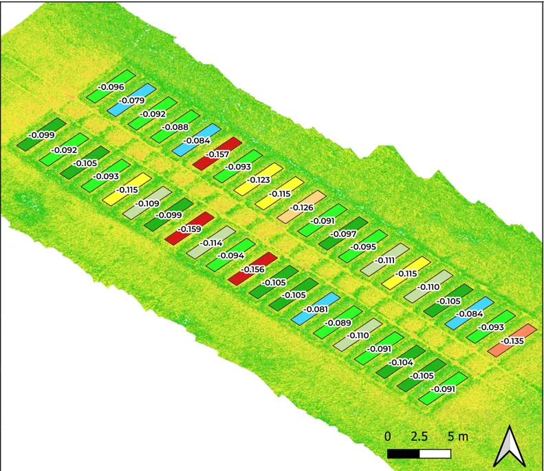 Unsere Daten zeigen, wo verstärkter Beikrautwuchs auftritt und wie gut Herbizide gewirkt haben. So lassen sich Unterschiede in Biomasse und Verdrängung schnell lokalisieren und vergleichen.